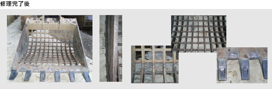 ツースアダプター減り、バケット内網目摩耗、バケット側面変形《新品同然にとのご依頼》